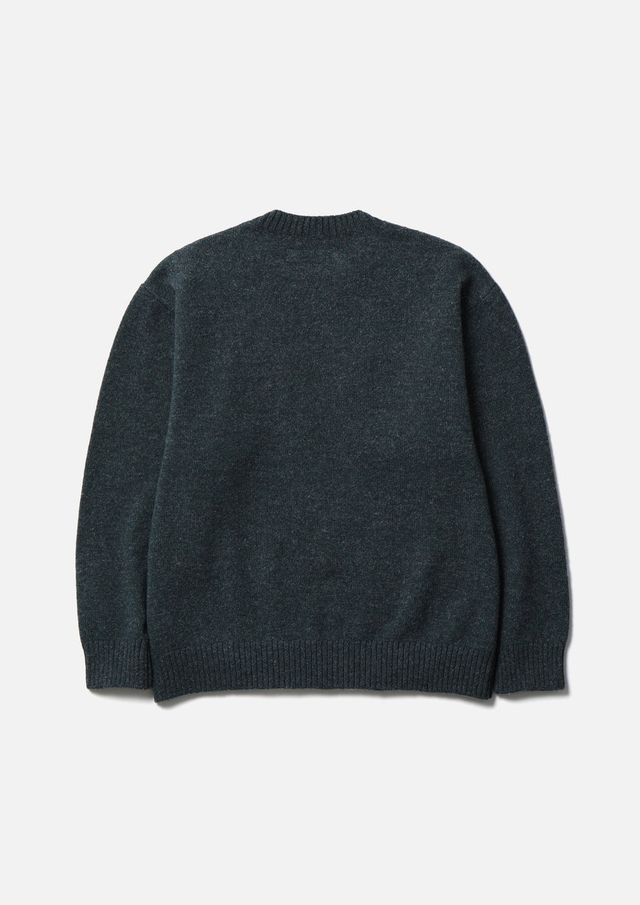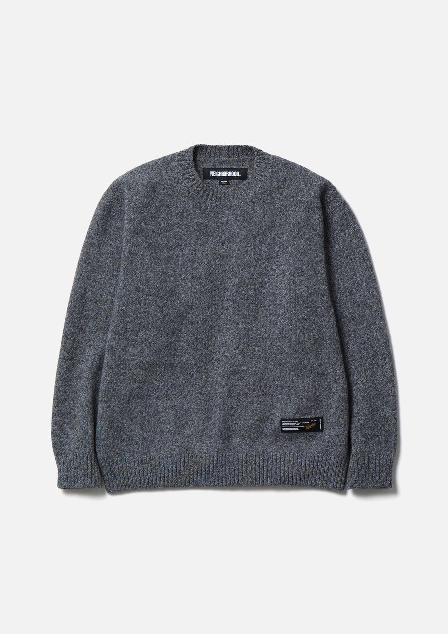 A crewneck knit made from merino wool, finished with 5-gauge jersey knitting. Brand tag on the left hem.