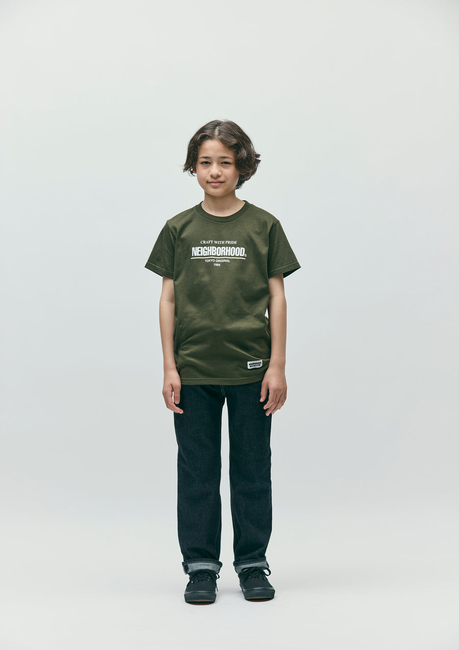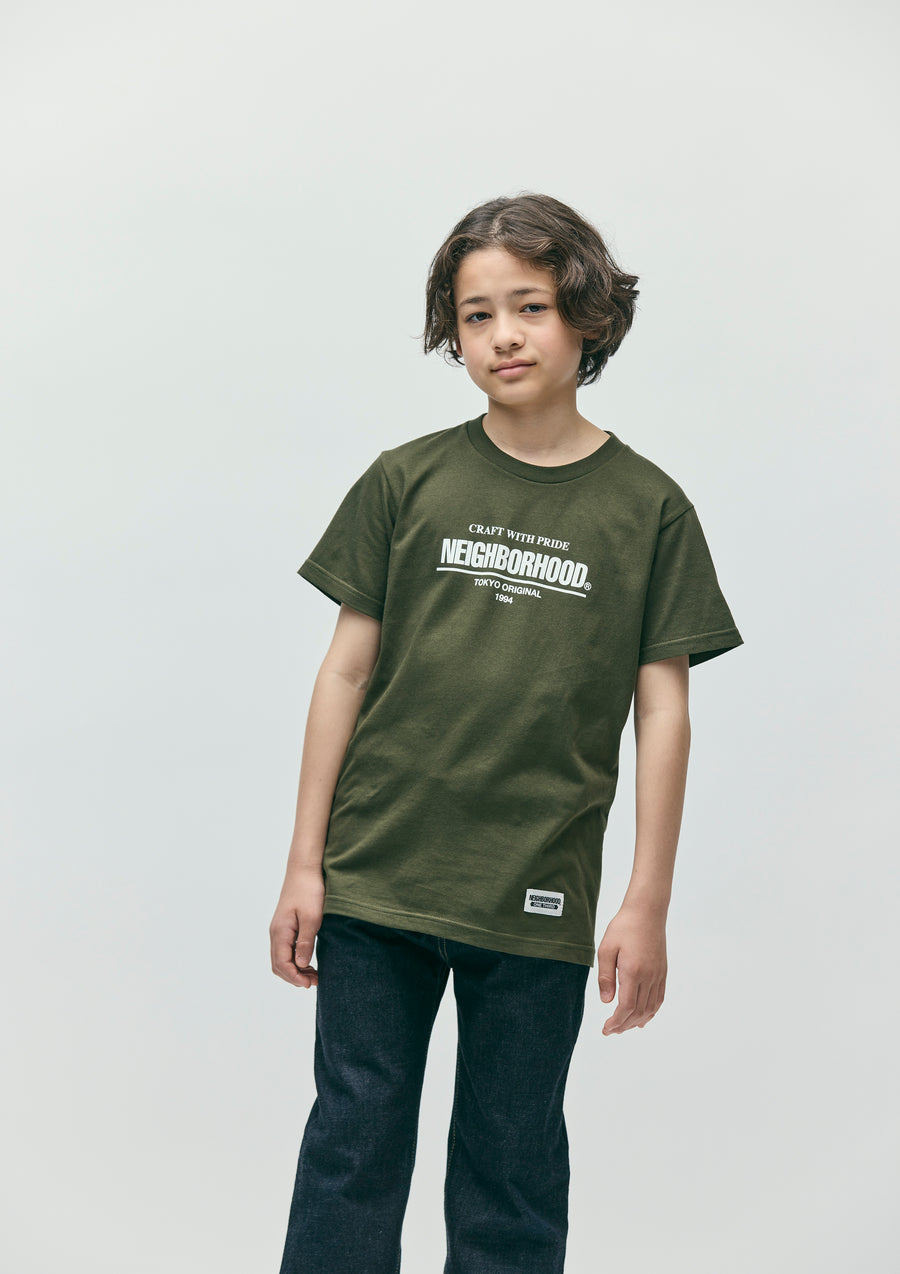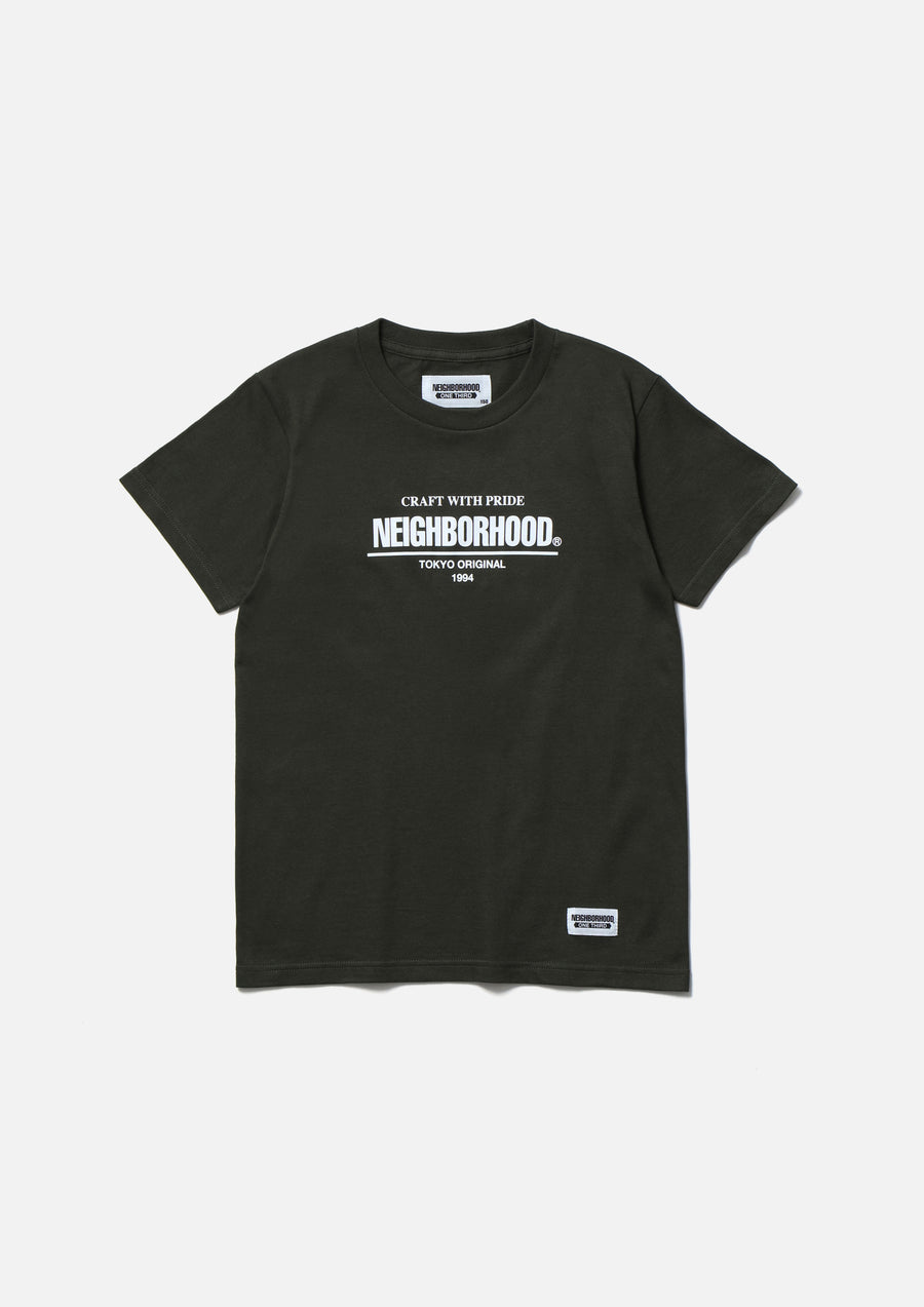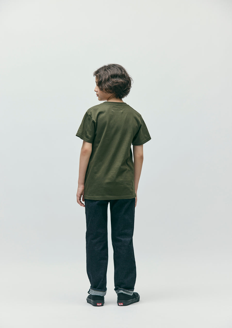 A short-sleeve T-shirt made of a 5.6oz heavyweight body. Printed logo on the front. A name tag is placed on the left hem.