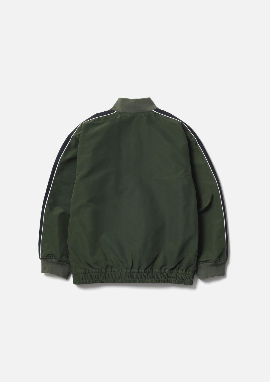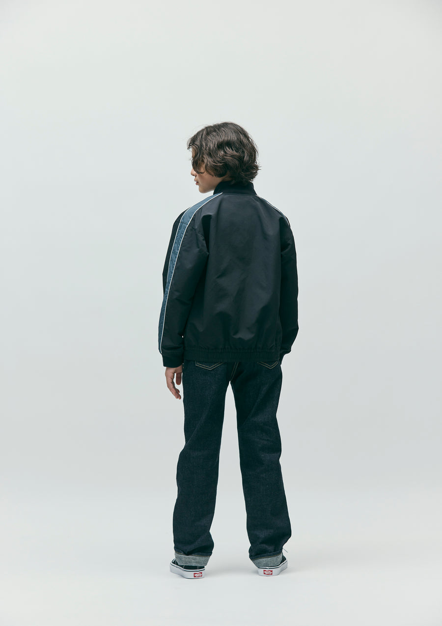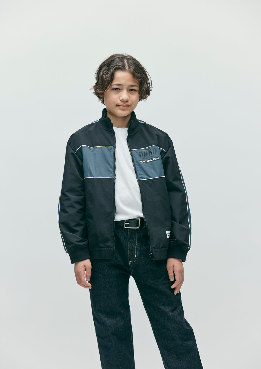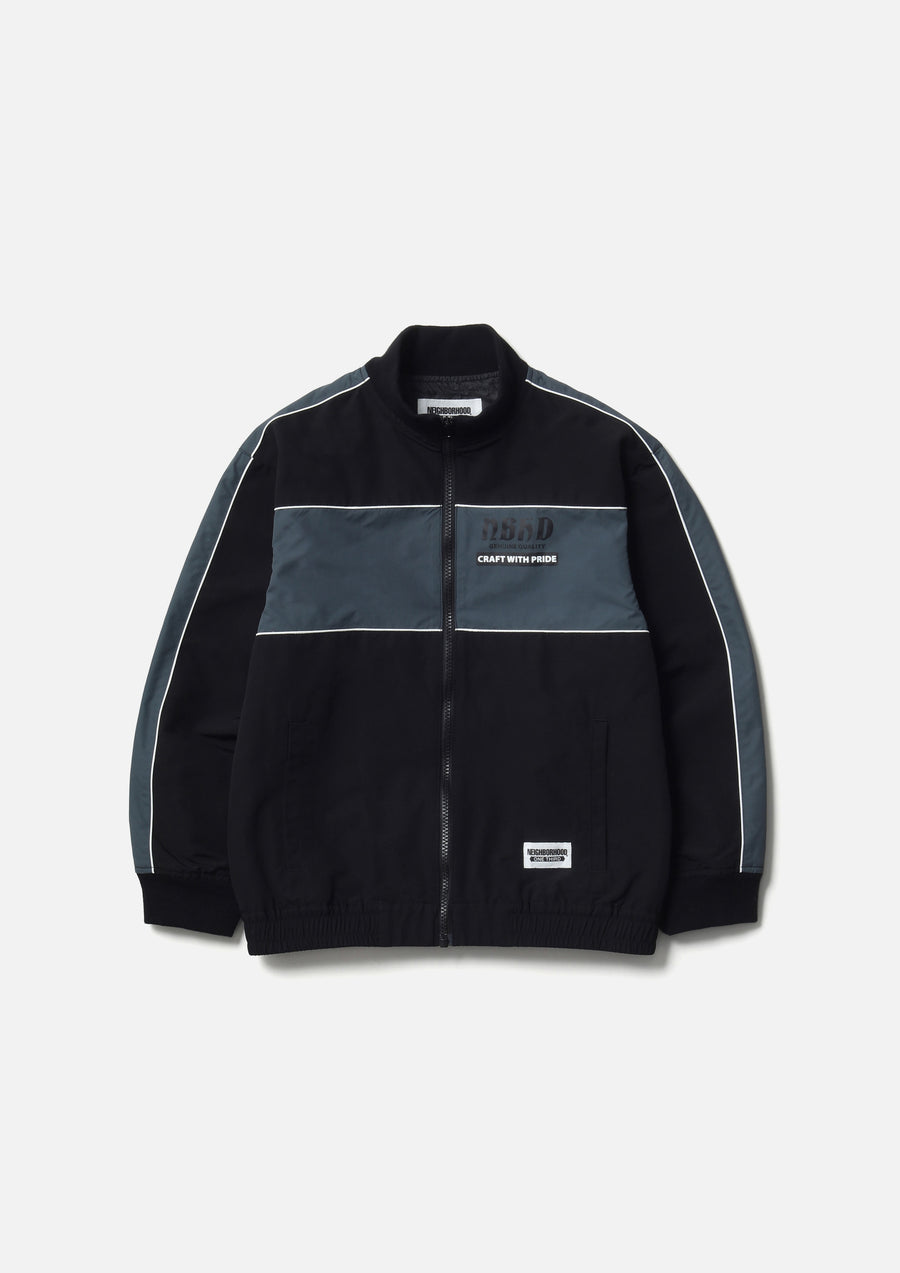 A track jacket made from cotton-nylon grosgrain fabric with moderate thickness, flexibility, and water repellency. The body and sleeves feature a color-blocked design with piping details. Printed logo on the left chest. Includes a brand tag on the left hem and on the side seam.
