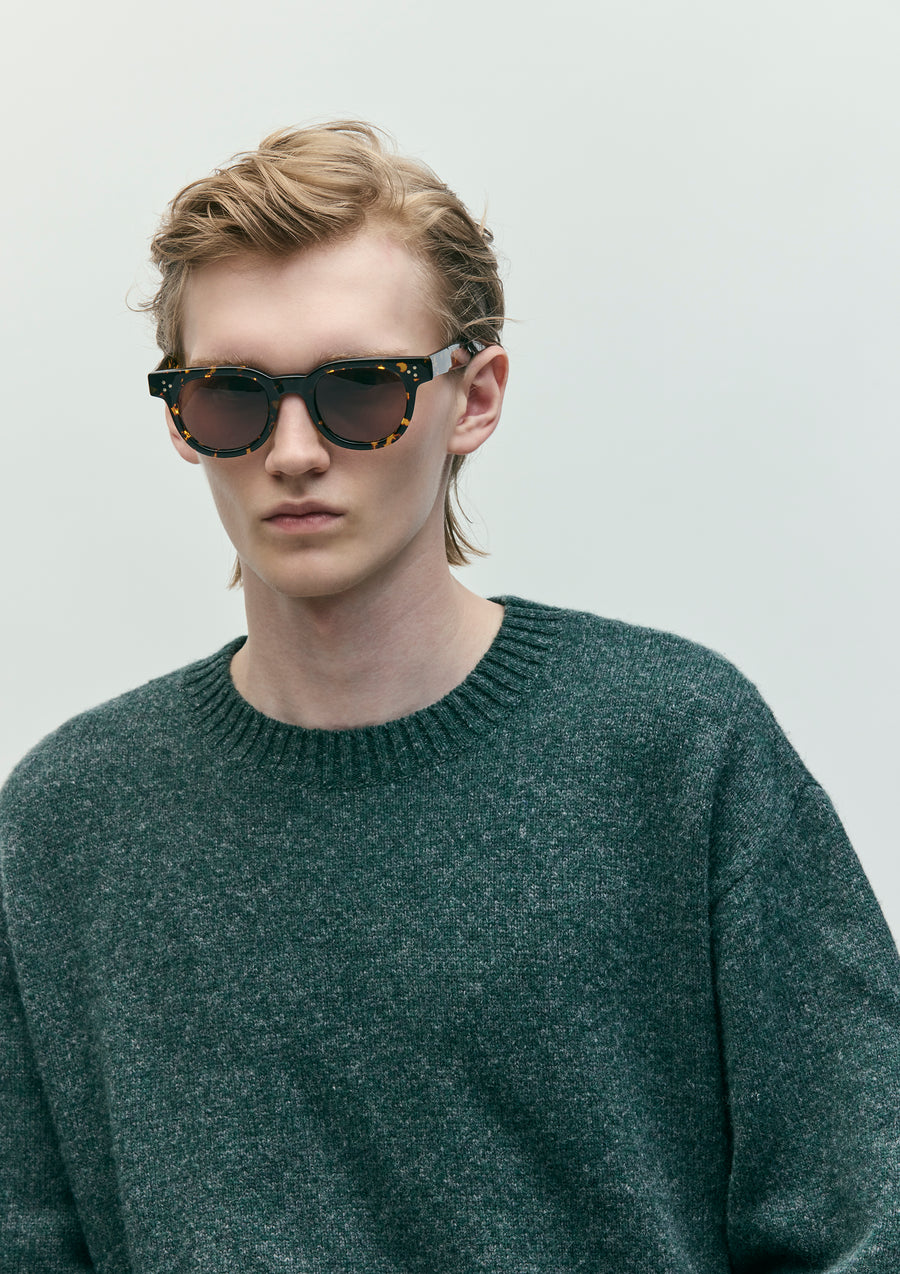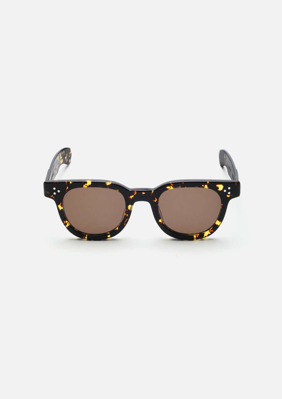 A collaborative item with JULIUS TART OPTICAL, based on the "F.D.R." model, a reproduction of the classic FDR frame from TART Optical Enterprises. The temples feature engraved logos from both brands. Equipped with 2Base lenses, which offer a vintage look while maintaining high light reflectivity to reduce visibility of the eyes. Provides a sharp aesthetic and a comfortable viewing experience. This special edition features a custom 50mm size, not available in this season's standard lineup.
