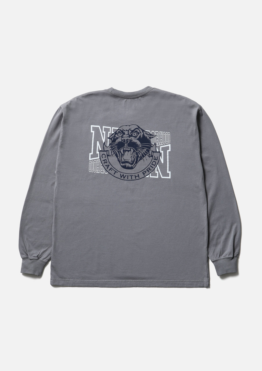 コットン天竺のオリジナルボディを使用したロングスリーブTシャツ。グラフィックをプリント。ワンウォッシュ仕上げ。